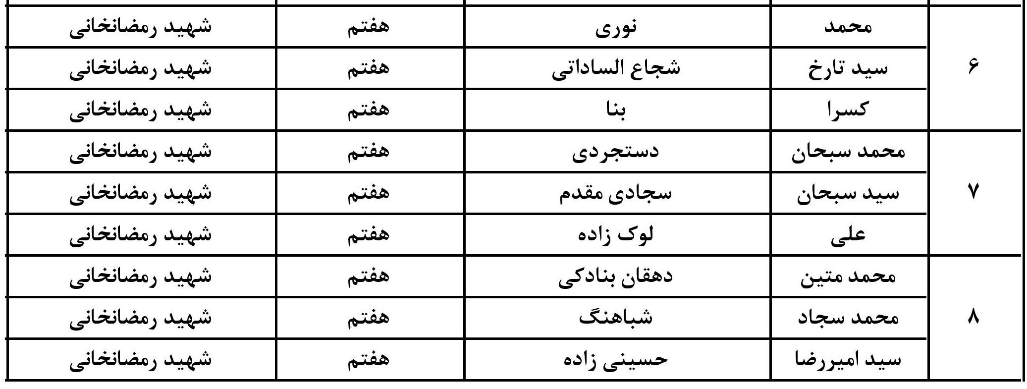 مرحله دوم (نهایی) تورنی تیم ریاضی در پایه های هفتم و هشتم به شرح زیر اعلام می گردد.